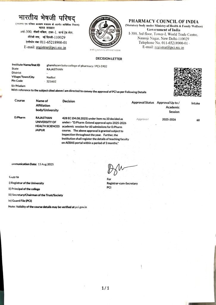 pci Affiliation – GBP College Nadbai, Bharatpur